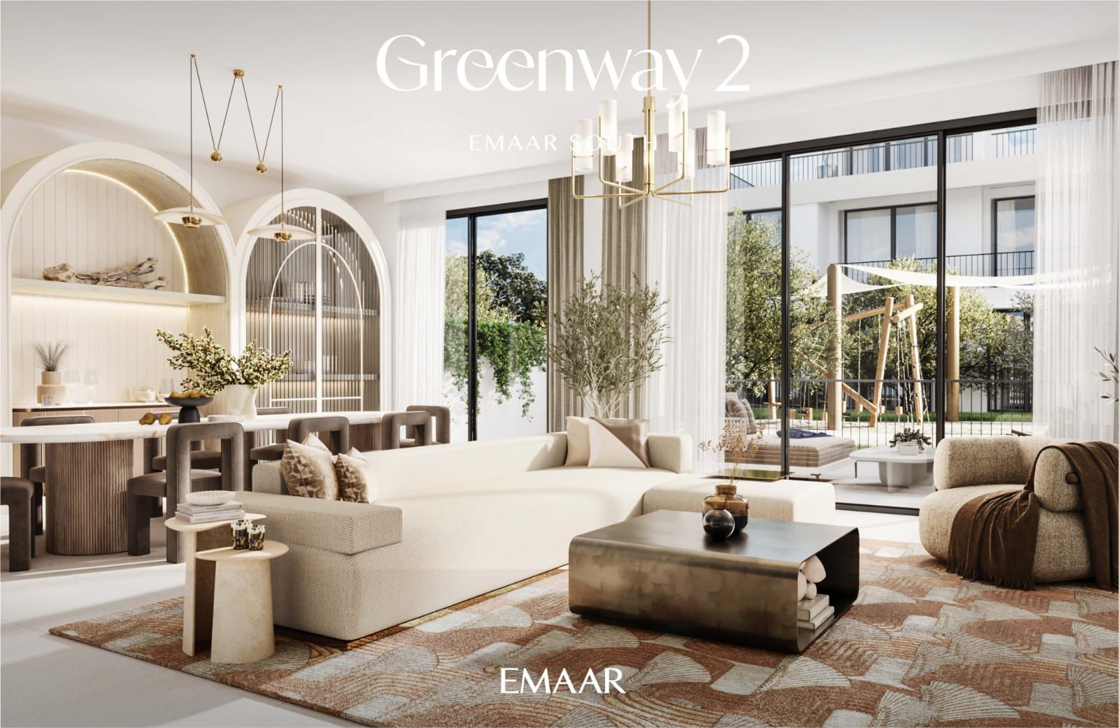 Greenway 2 at Emaar South is a distinguished residential project by Emaar Properties nestled in Dubai’s vibrant heart with 3 & 4 bedroom townhouses. This exclusive, gated community offers an elevated lifestyle through its meticulously designed residences, which are arranged in clusters of four to balance privacy and community living.